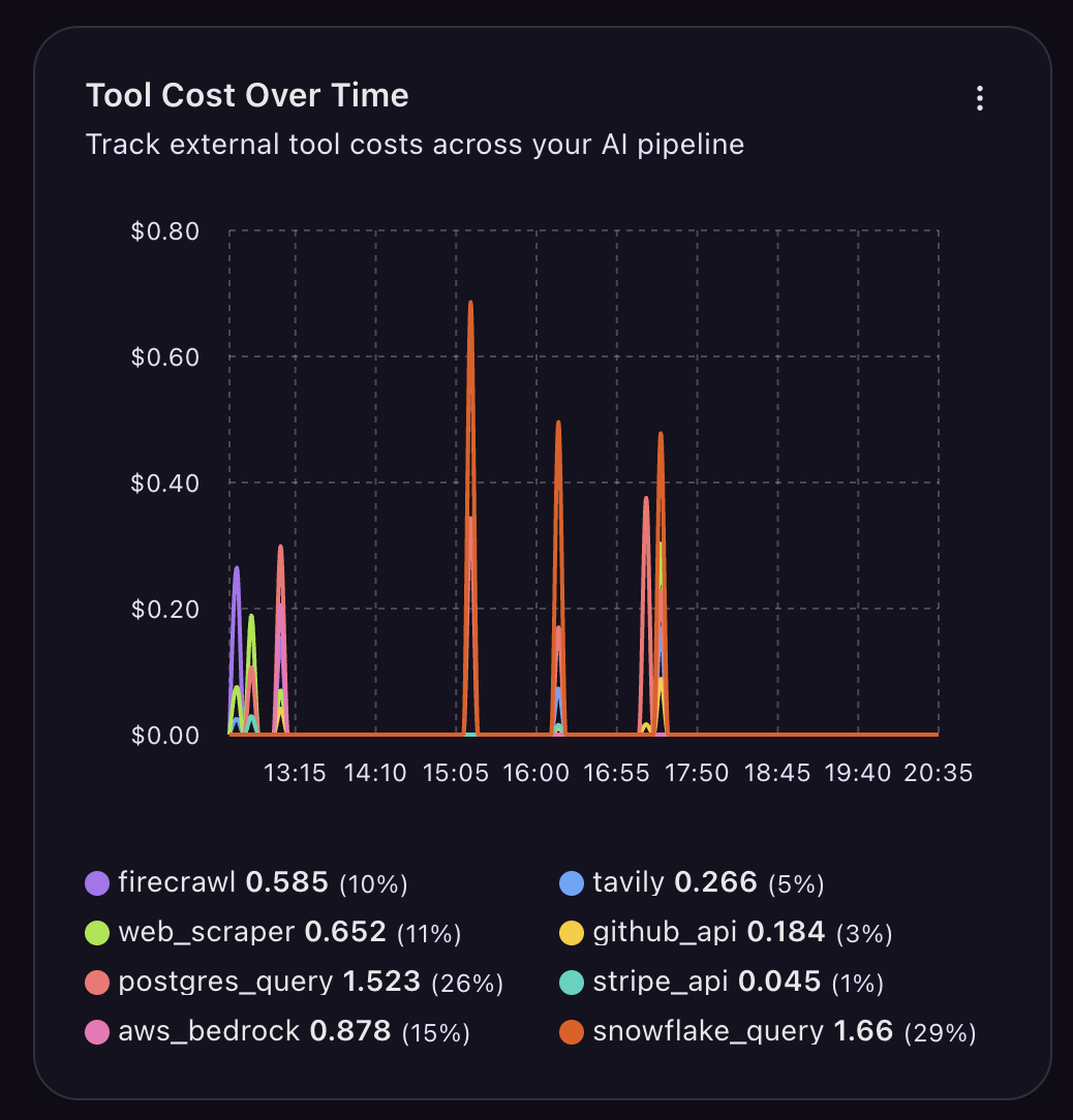 Tool costs over time: understand spikes, drivers, and where spend is coming from by each tool.